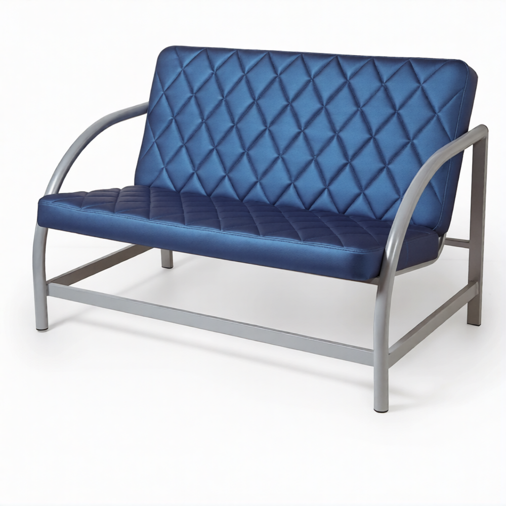 Отделка производится искусственной кожей разного уровня качества (эконом, стандарт, элит), что позволяет индивидуально подбирать расцветку и структуру материала. Аккуратные детали поддерживаются стойкими и декоративными рамочными элементами из серой профильной трубы, покрытой порошковым полимером, что усиливает антикоррозионные свойства. Поскольку диван не оборудован складным механизмом, сохраняется оригинальная форма и удобство в повседневной эксплуатации. Предназначенный для умеренных нагрузок (до 160 кг), диван выдерживает регулярное использование и сохраняет свой первоначальный внешний вид на протяжении многих лет.