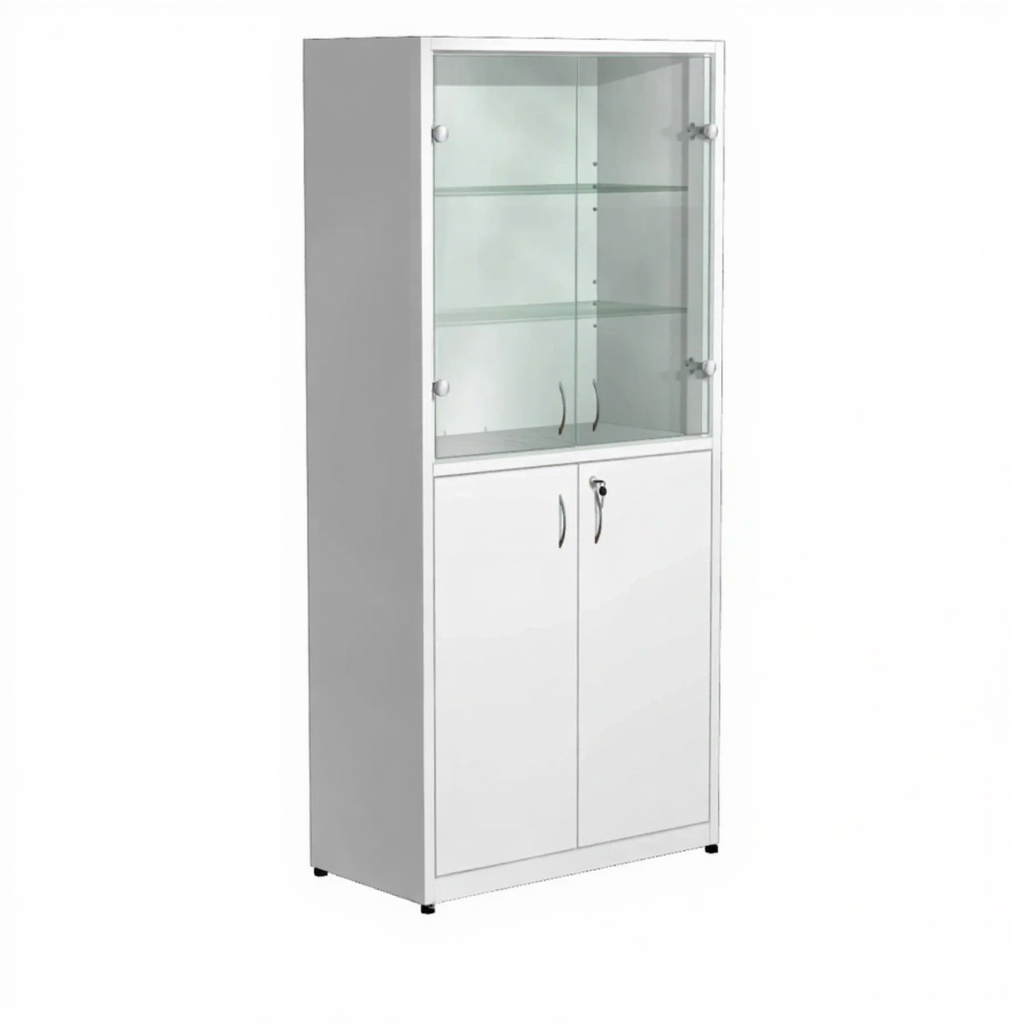 Шкаф для медикаментов стекло/металл ШМ-2.1 (белый) активно используются в больницах, лабораториях, аптеках, где необходимо хранение медикаментов, медицинского инвентаря, одежды работников, приборов, больничной документации.