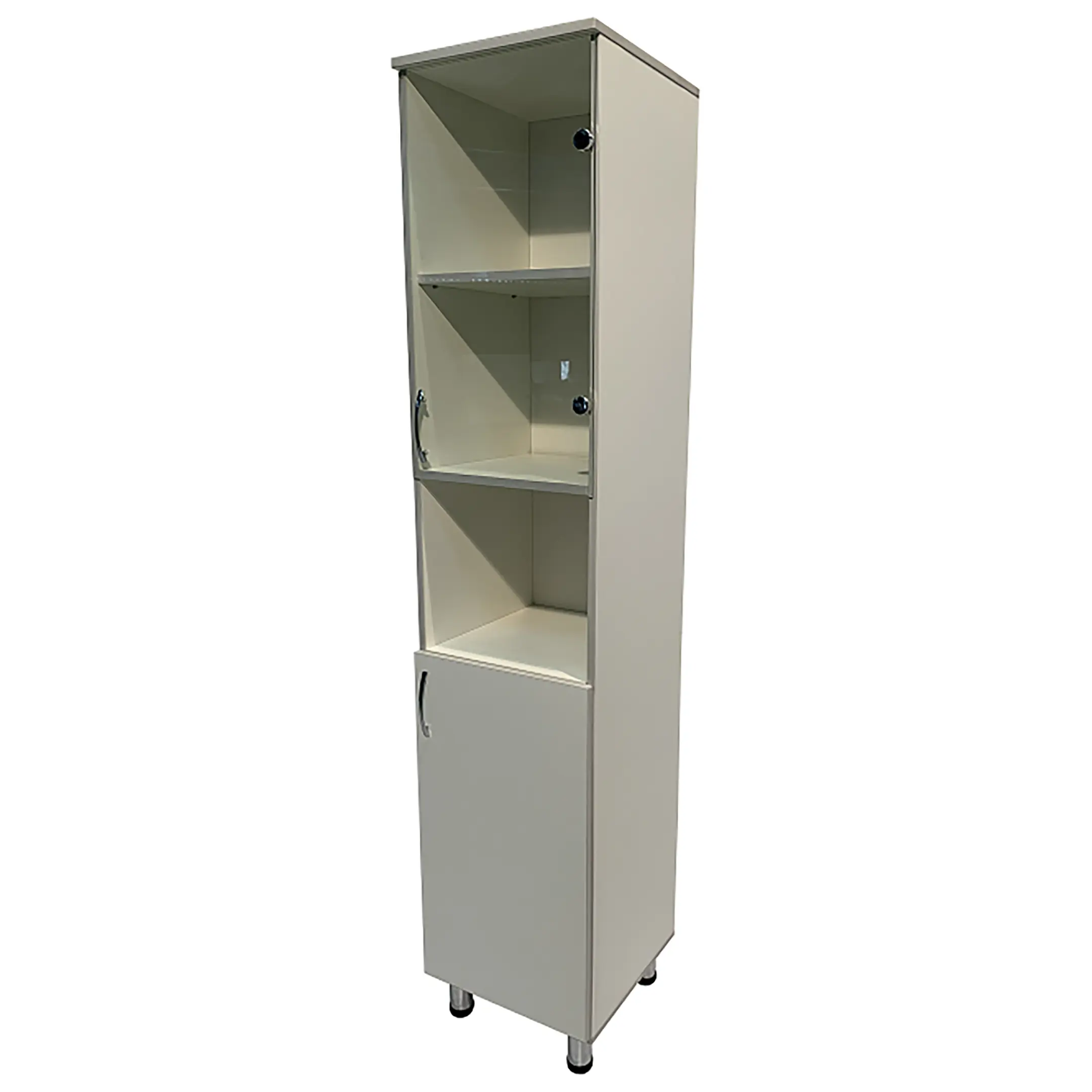 • Ниша шкафа разделена на отделения, что помогает эффективно организовать хранение и быстро находить необходимые материалы.
