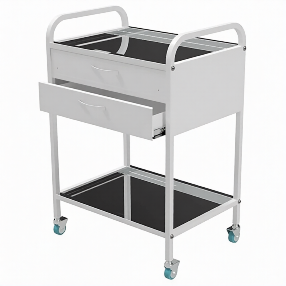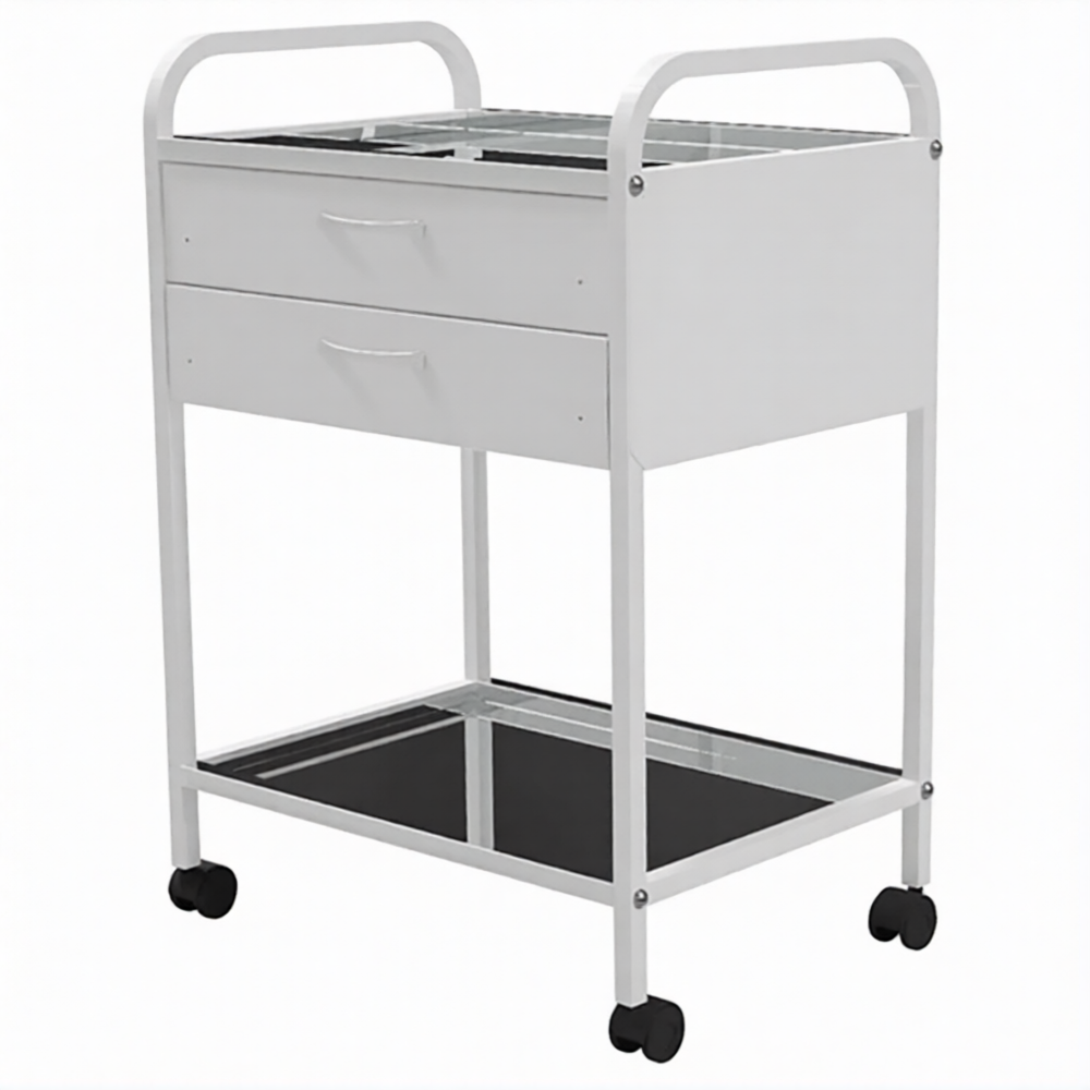 Стол медицинский инструментальный СМИ-02-02 (полки металл, колёса серая резина)