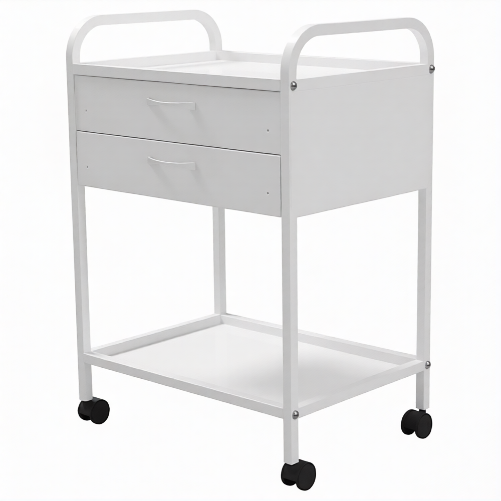 Стол медицинский инструментальный СМИ-02-02 (полки металл, колёса серая резина) предназначен для размещения инструмента, лекарственных препаратов и приборов.