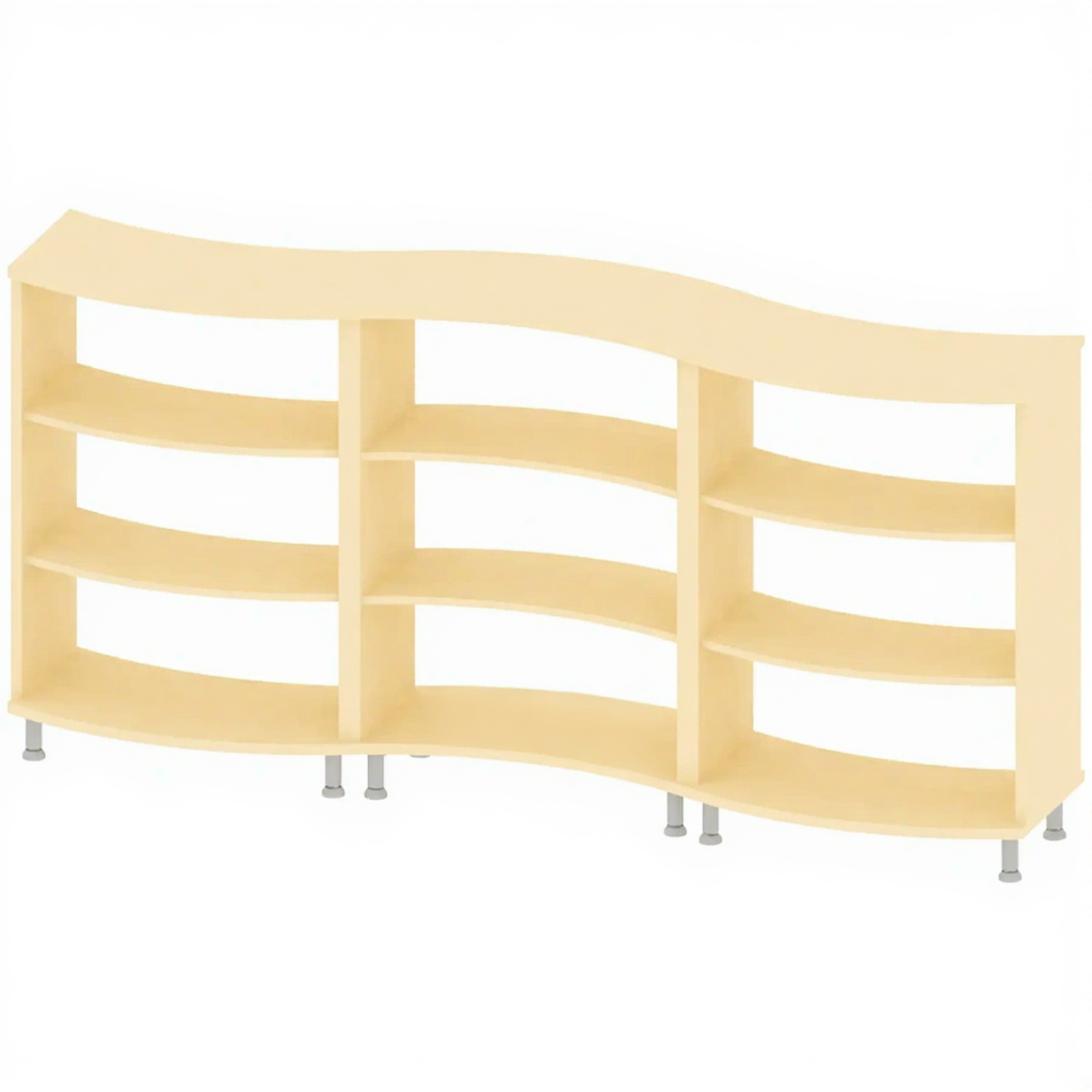 Стеллаж «Волна» СТ-АД-151 — это оригинальное и динамичное решение для организации хранения и зонирования пространства в современных интерьерах образовательных учреждений, офисов и общественных зон. Модель СТ-АД-151 отличается уникальной волнистой, или зигзагообразной, линией боковых панелей, что придает ей выразительный, нестандартный вид и позволяет создавать интересные визуальные эффекты. Стеллаж предназначен не только для функционального хранения книг и предметов, но и для использования в качестве стильного арт-объекта или разделителя пространства.