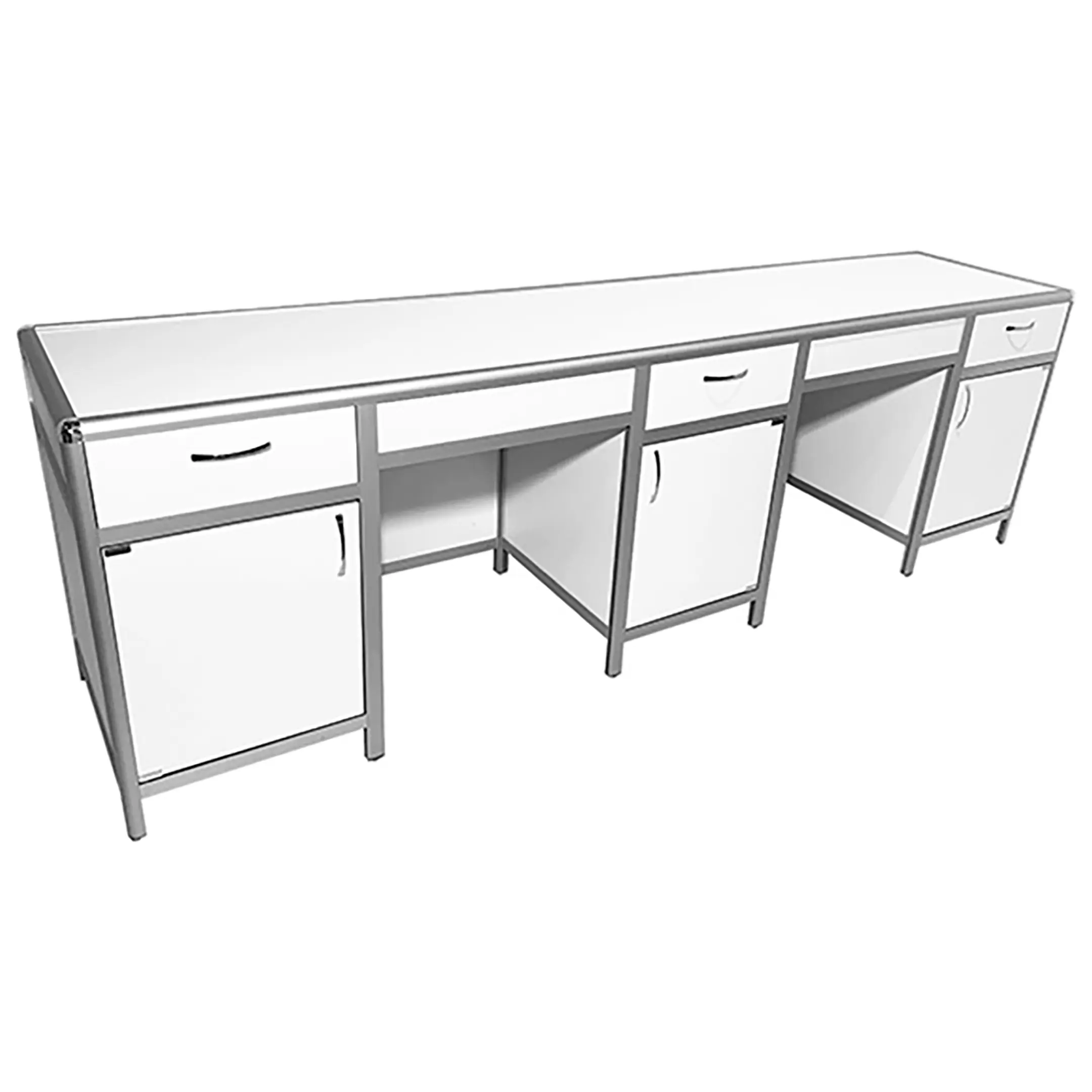 Стол лабораторный MED 10.011al (белый) — это идеальное решение для создания эффективного и организованного рабочего места сотрудников в лабораториях и медицинских учреждениях. Модель оснащена тремя тумбами, каждая с верхним выдвижным ящиком, отделением с распашной дверкой и полкой. Каркас выполнен из алюминиевого профиля, столешница из ЛДСП толщиной 16 мм.