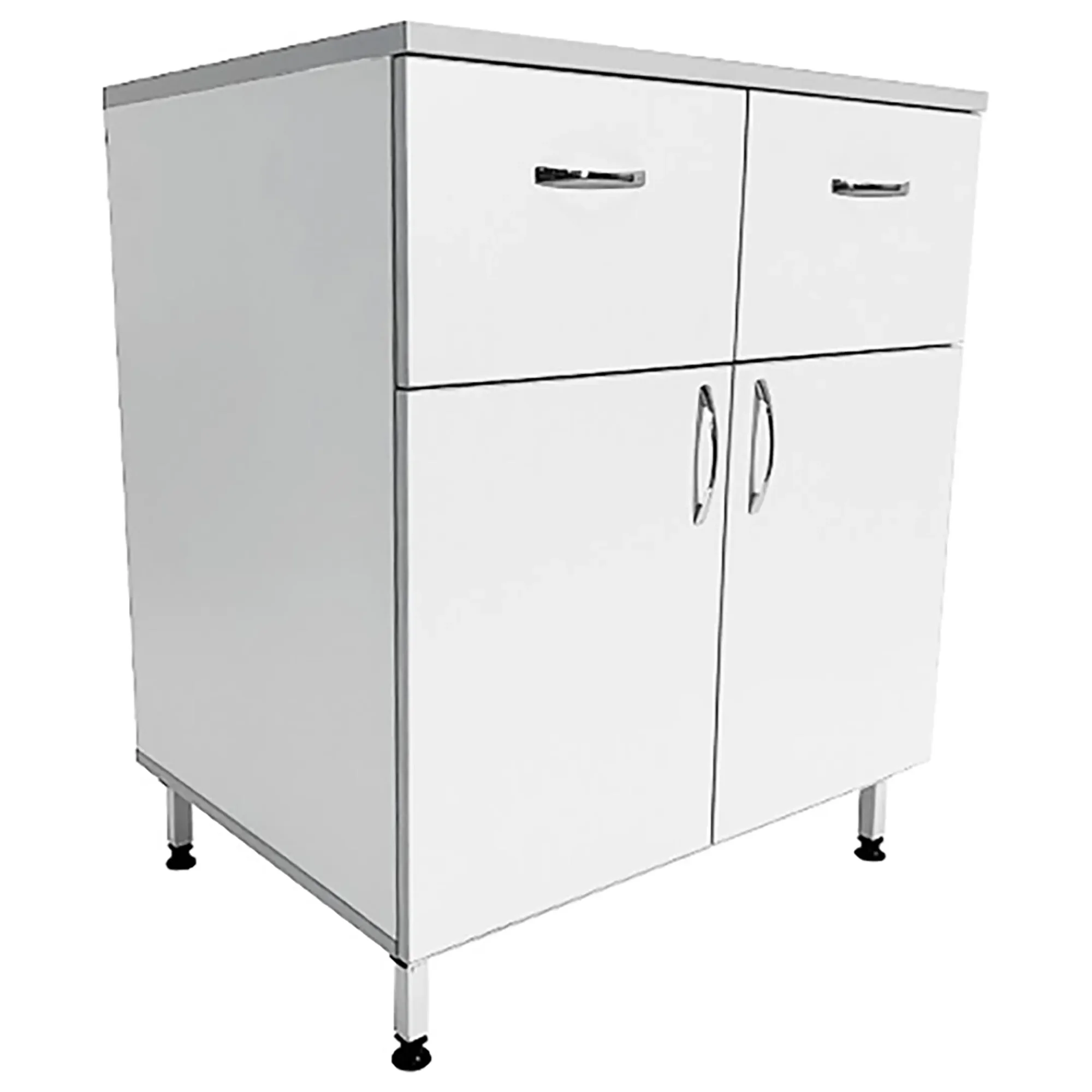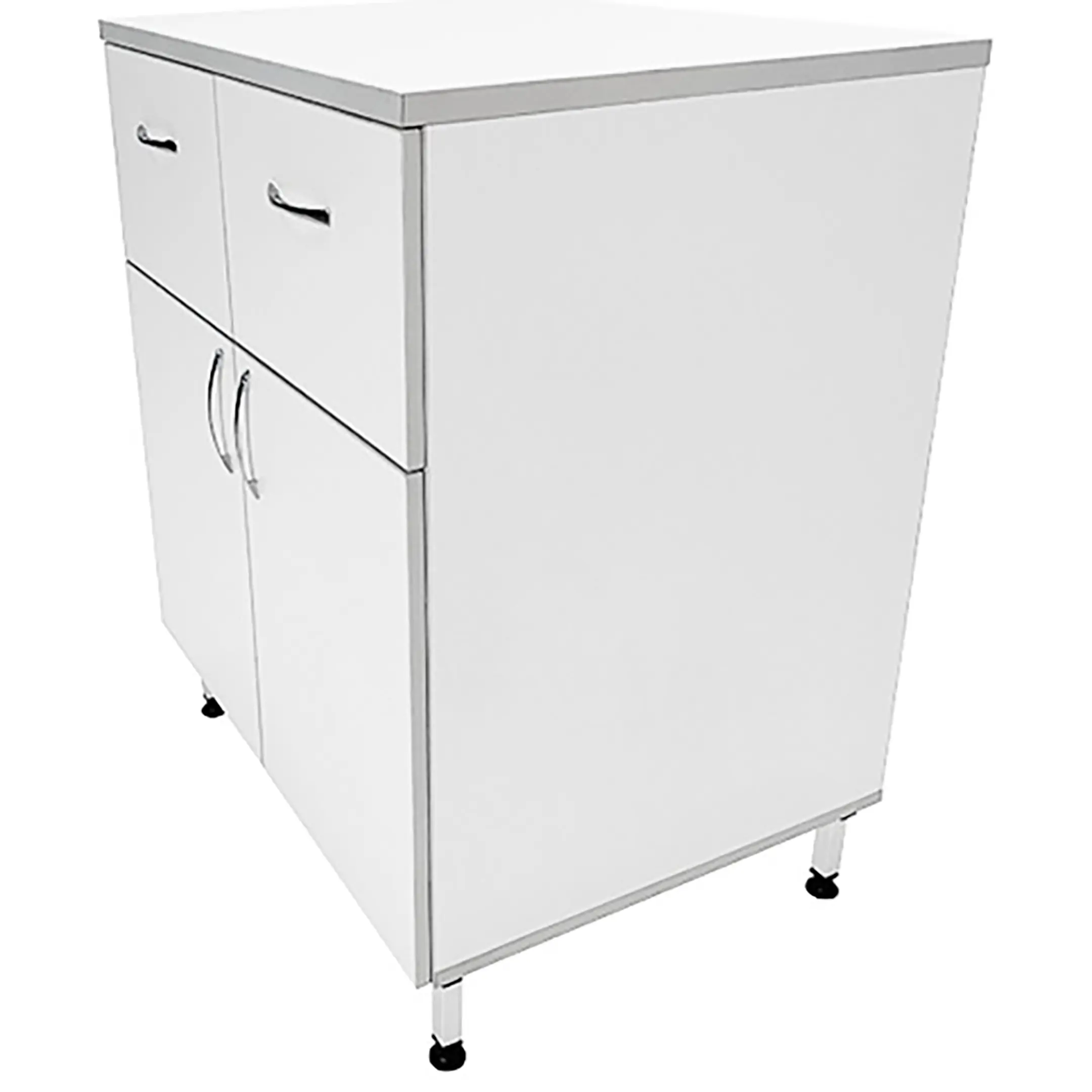 Стол-тумба лабораторная ТЛ 18.008 (белый) — это функциональное и удобное решение для хранения различных материалов, инвентаря и приборов в лабораторных условиях и медицинских учреждениях. Модель разделена на два вертикальных отдела, каждый из которых оснащен выдвижным ящиком и отделением с распашной дверкой и полкой внутри. Каркас выполнен из ЛДСП толщиной 16 мм, столешница из ЛДСП толщиной 22 мм.