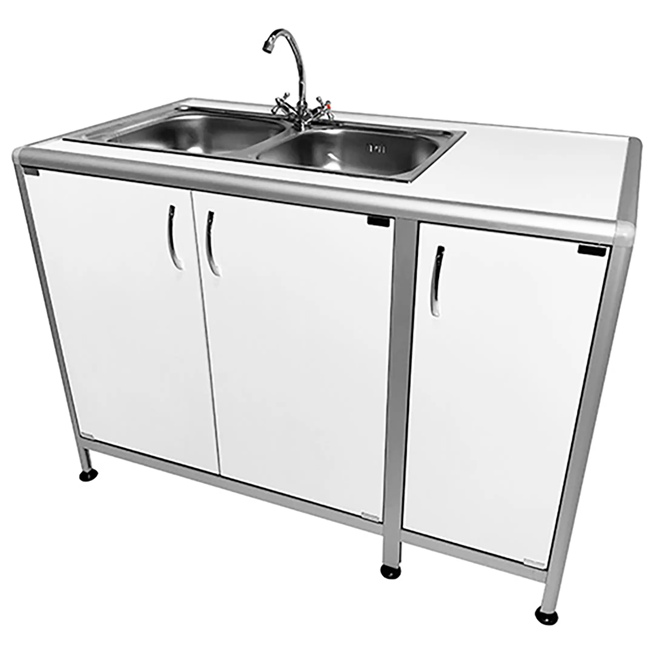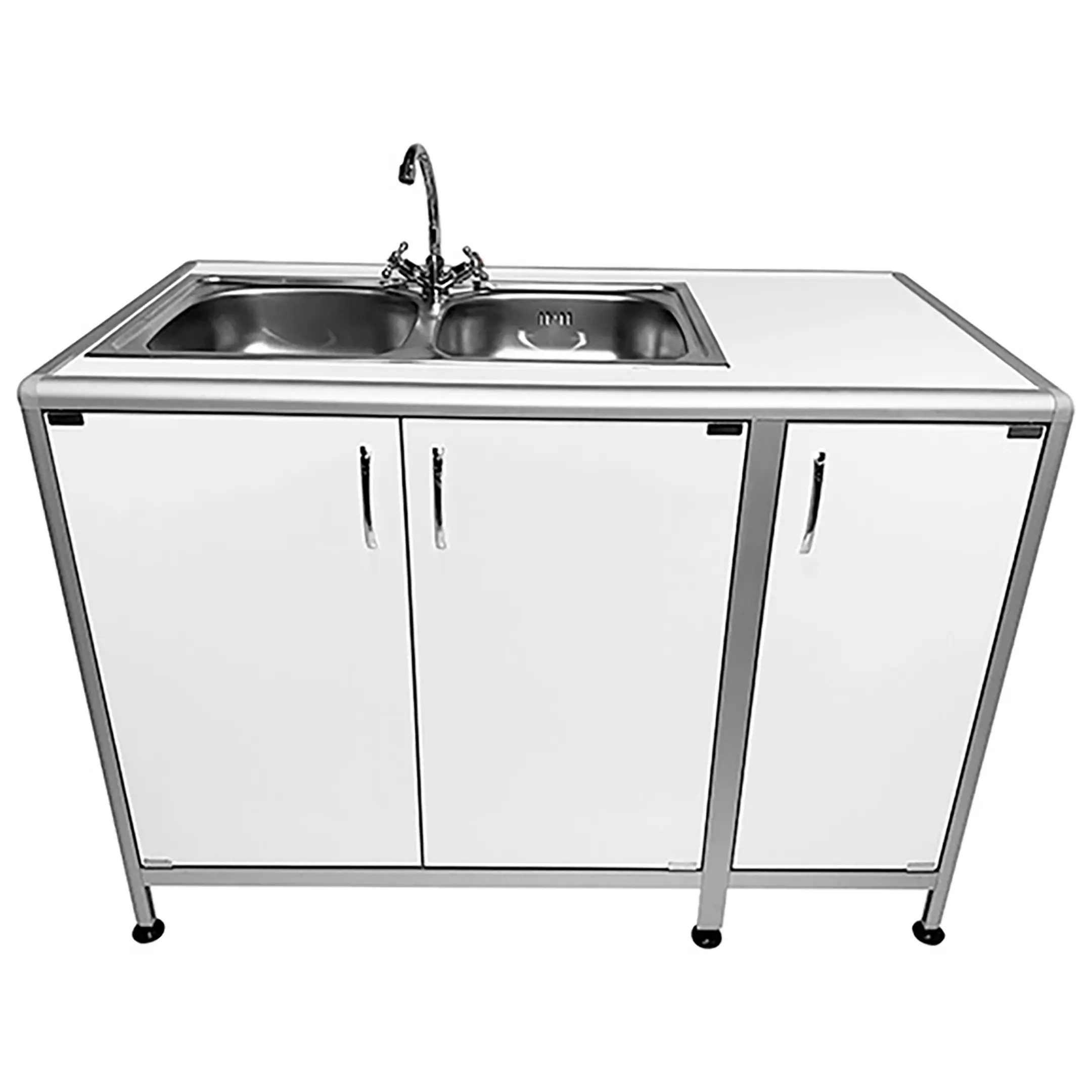 Стол-мойка лабораторная MED 13.005al (белый) — это высококачественное оборудование, специально разработанное для использования в лабораториях и медицинских учреждениях. Модель оснащена двухчашной мойкой со смесителем, тумбой с тремя дверцами и столешницей сбоку. Каркас выполнен из алюминиевого профиля, столешница и обшивка из ЛДСП.