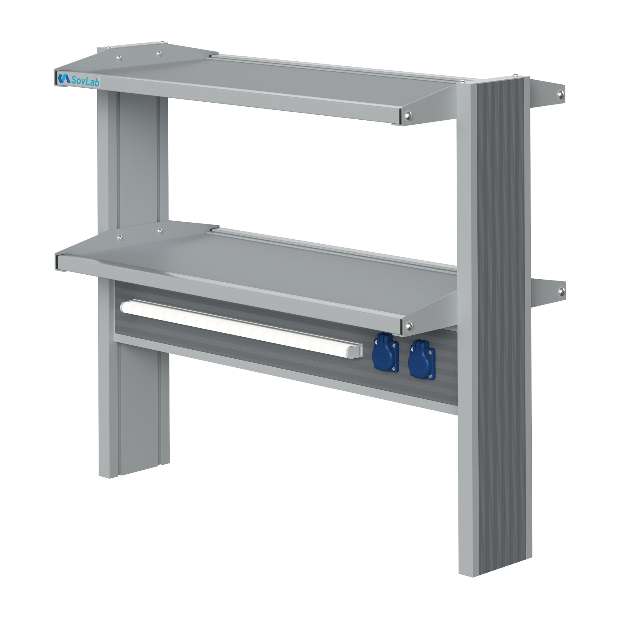- Компактная и вместительная конструкция — две полки глубиной 408 мм в алюминиевых рамках позволяют разместить лабораторный инвентарь и оборудование.