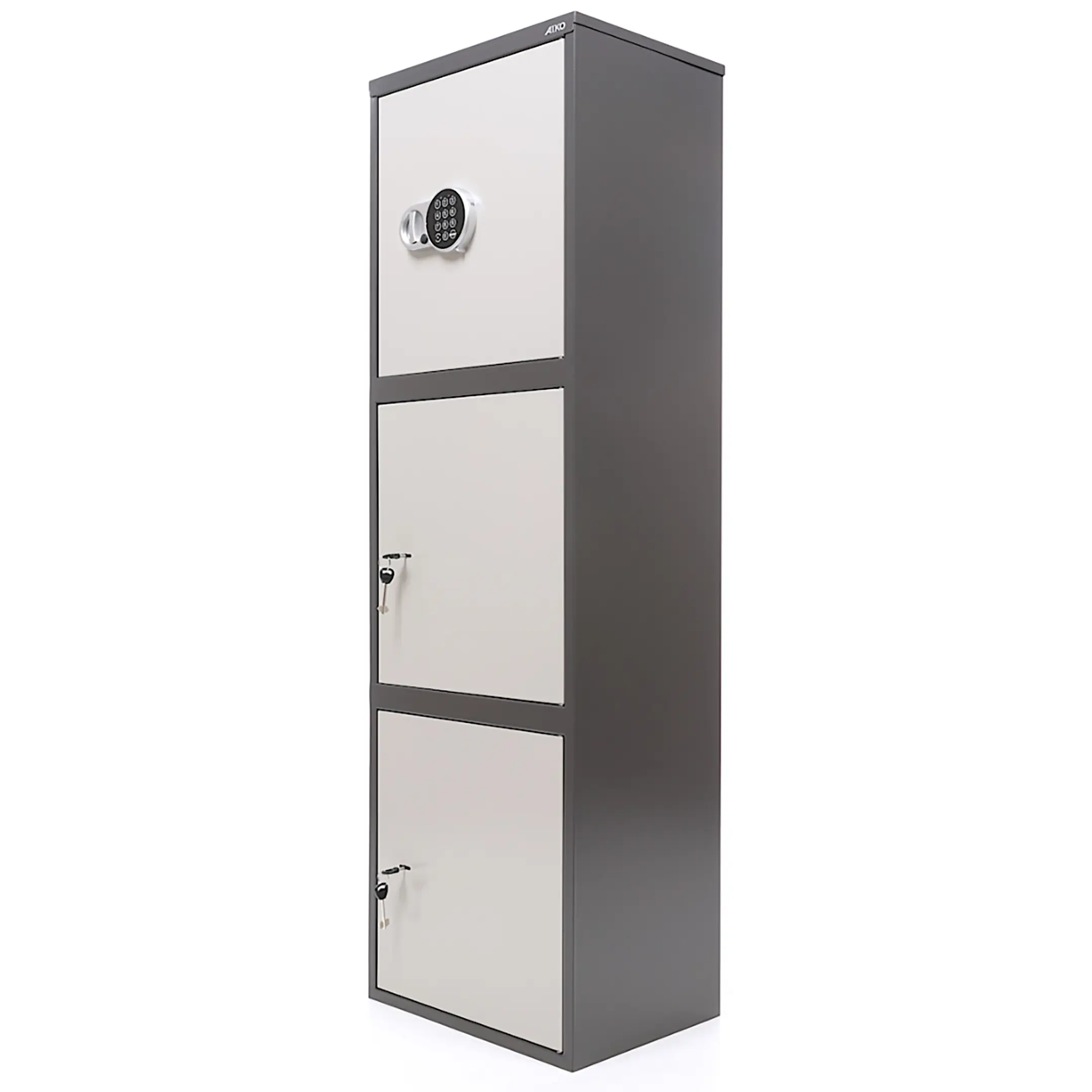 • комплектуется ключевым замком + электронный замок PLS-1( электронный замок устанавливается только на верхнюю дверь, на остальные – ключевой);