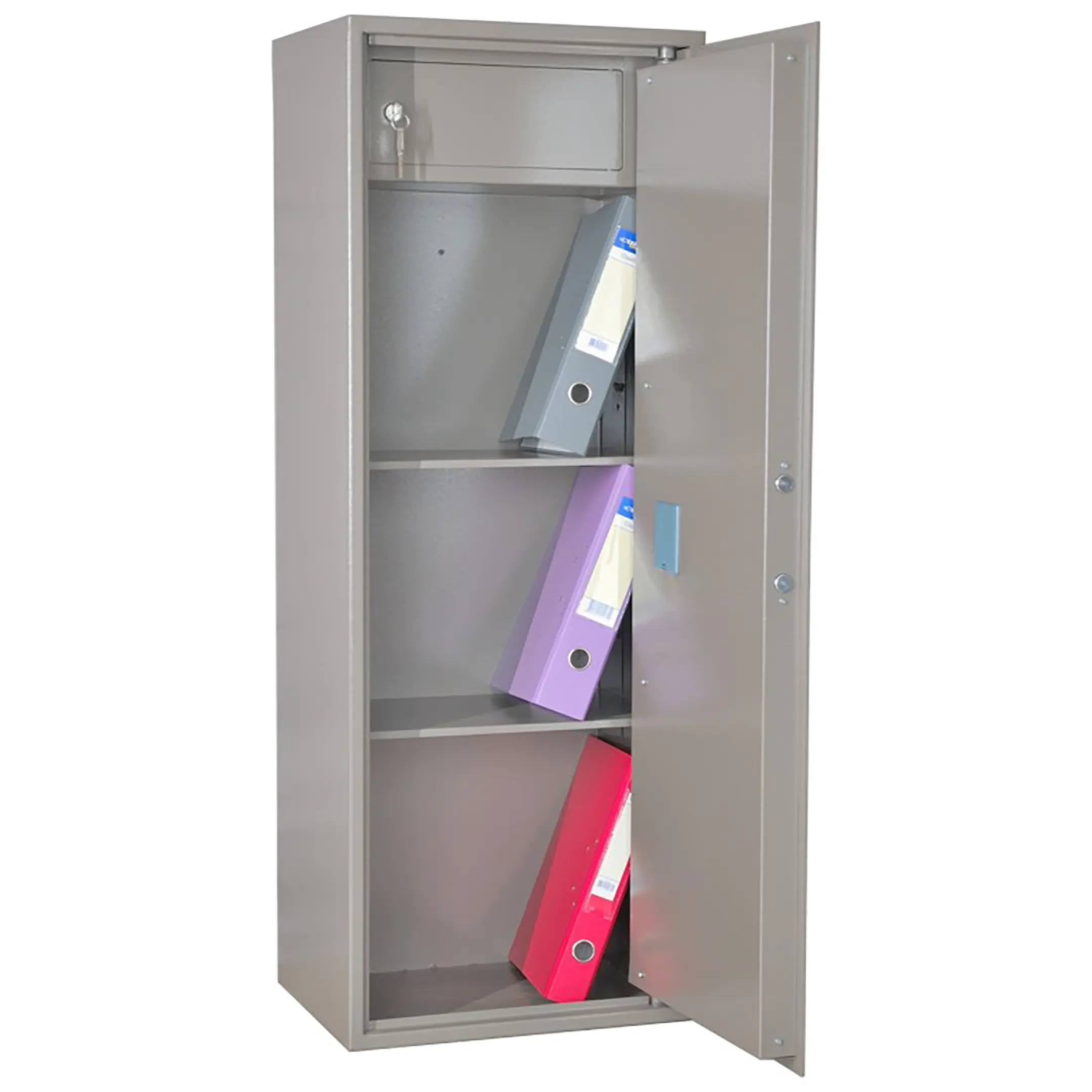 Шкаф офисный ШБМ-120Э — это современное и вместительное решение для защищенного хранения документов, ценных предметов, медикаментов и оборудования в медицинских, офисных и административных учреждениях. Модель сочетает значительный внутренний объем, электронную систему запирания и функциональное внутреннее пространство, обеспечивая высокий уровень безопасности и удобства хранения.