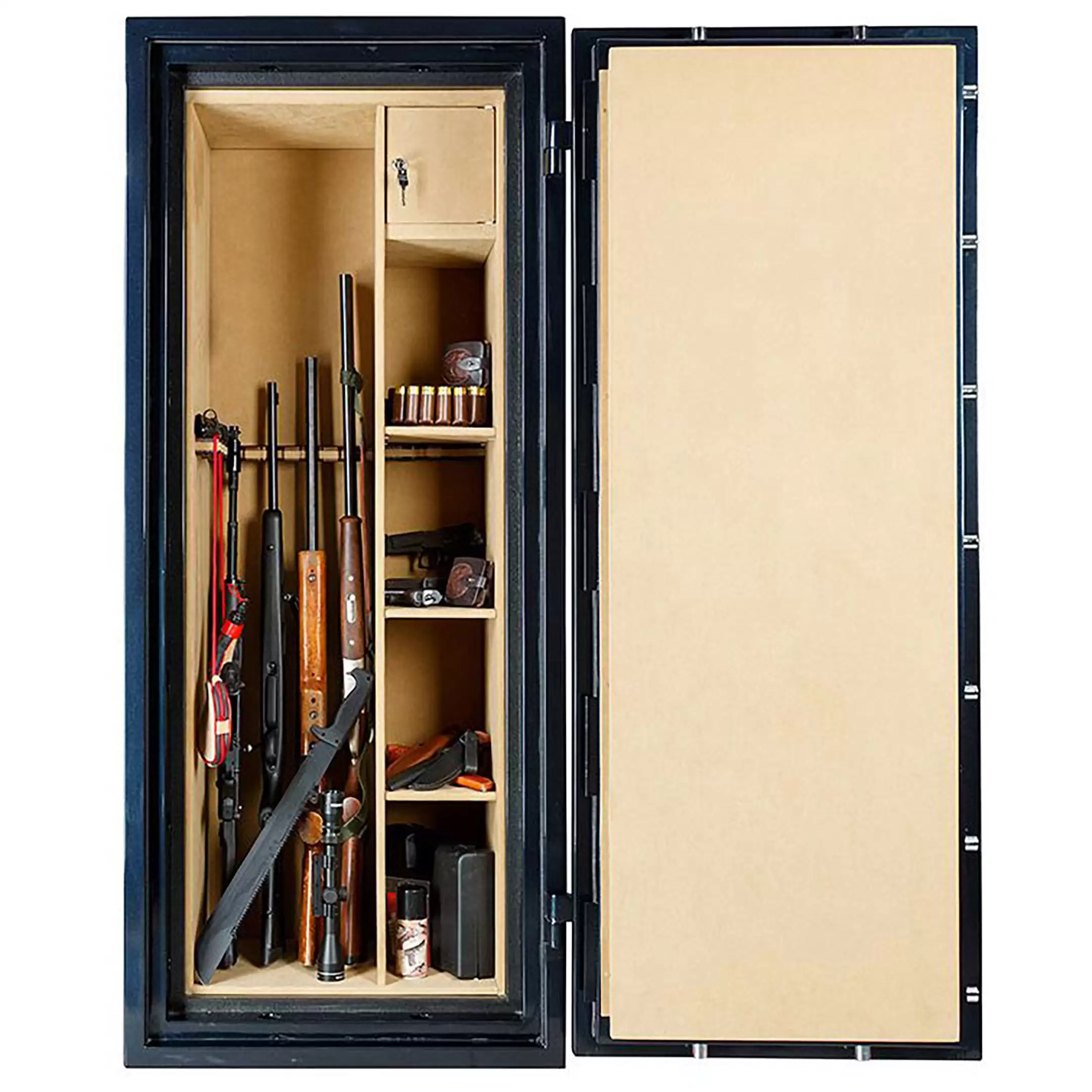 Используется для хранения гладкоствольного, нарезного охотничьего и травматического оружия и боеприпасов. Соответствует всем требованиям МВД.