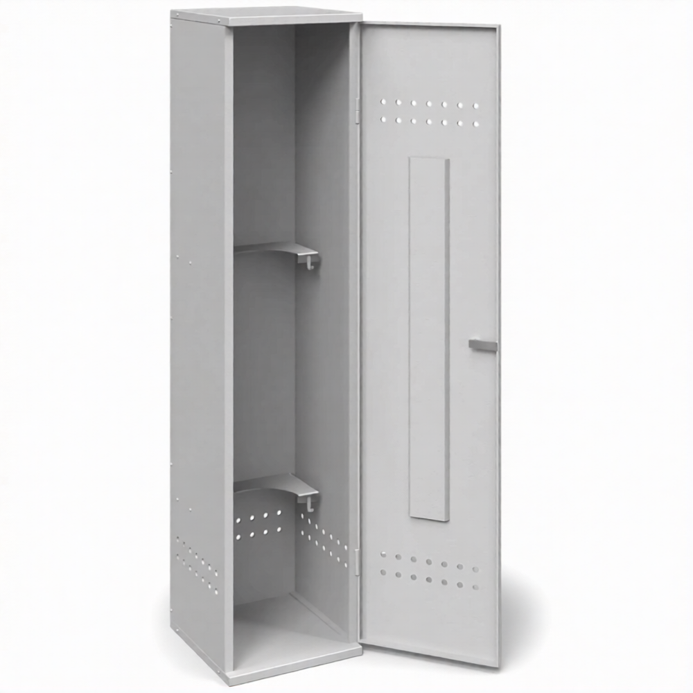 - Самая доступная цена на рынке — использование тонколистовой стали делает эту модель самым бюджетным вариантом для хранения одного баллона. Это оптимальный выбор для тех, кому важно соблюсти базовые требования безопасности или просто навести порядок в хозяйстве без значительных финансовых вложений.