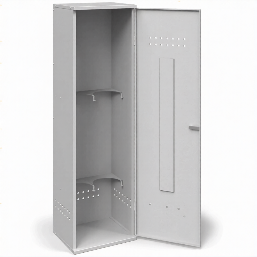 - Самая доступная цена на рынке — использование тонколистовой стали делает эту модель самым бюджетным вариантом для хранения двух баллонов. Это оптимальный выбор для тех, кому важно соблюсти базовые требования безопасности или просто навести порядок в хозяйстве без значительных финансовых вложений.